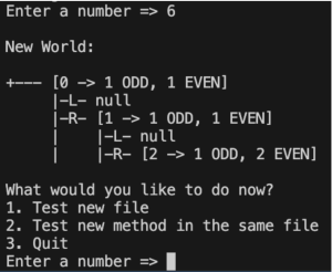 IMPORTANT: Note that this tree and any modifications you make by testing/calling other methods will carry over to other method tests/calls in the driver. You don’t need to start over if you’ve called the required methods in order without modifying the tree.