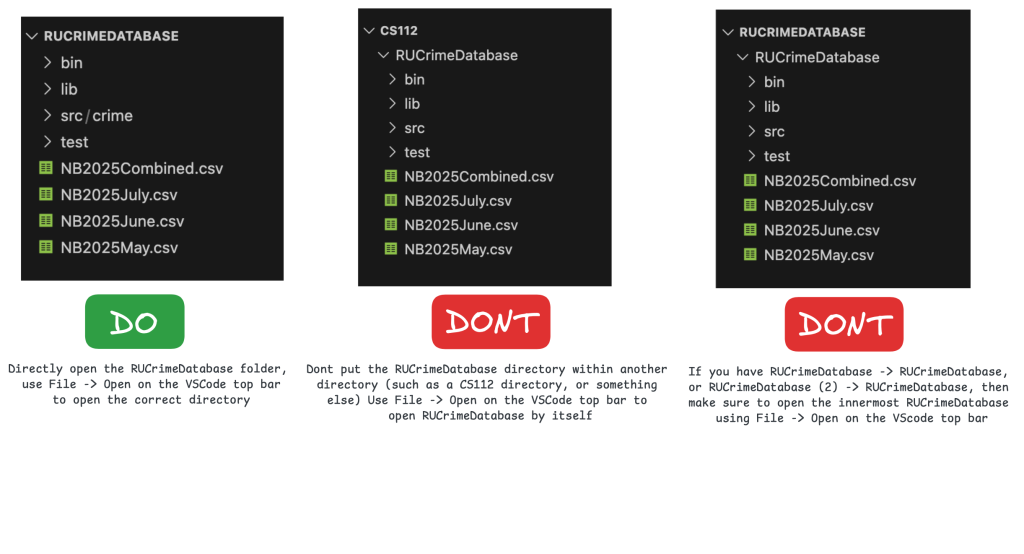 NOTE: if you have RUCrimeDatabase (2) -> RUCrimeDatabase or CS112 -> RUCrimeDatabase in VS Code, open the INNERMOST RUCrimeDatabase through File -> Open Folder.