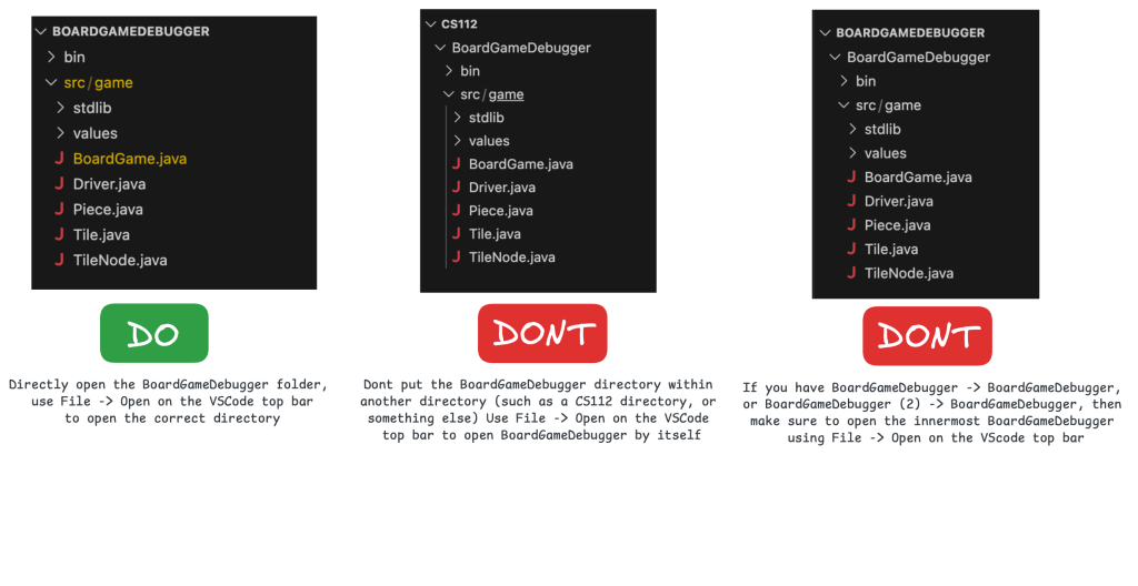 To Run: Run in Debug Mode through VSCode, ensuring you open the correct innermost BoardGameDebugger directory.