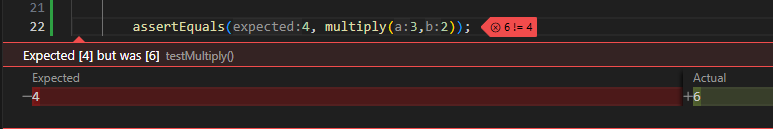 i.e. assertEquals(“Expected String (from above)”, actual function call)